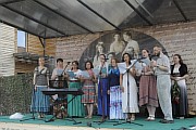 Во время концерта несколько раз дождь лил стеной, но никто не покидал праздника. Не испугались погоды и самые юные гости, которые одновременно с выступлениями артистов усердно принимали участие в различных мастер-классах: по вышивке шелковыми лентами, декупажу по дереву, стрельбе из лука и других. Каждый нашел себе занятие по душе.