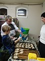 После трапезы были организованы практические занятия по приготовлению бездрожжевого хлеба, изделий из слоеного теста и даже ухи на костре: ведь совместный труд сплачивает лучше всего. Обучали кулинарному искусству наш замечательный шеф-повар Максим Журавлёв и заражающая всех своей жизнеутверждающей энергией и неиссякаемым задором Нина Николаевна Иванова-Гурьянова. Самым юным и, на удивление, самым активным оказался Артём Степанов: он с большим вниманием и усердием сумел поучиться у всех наших поваров, и во всех блюдах осталась частичка его детской горящей души.